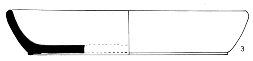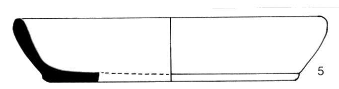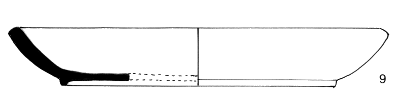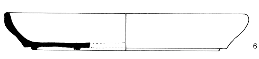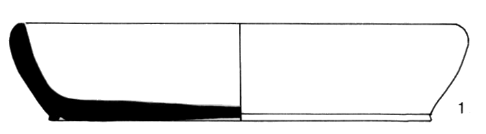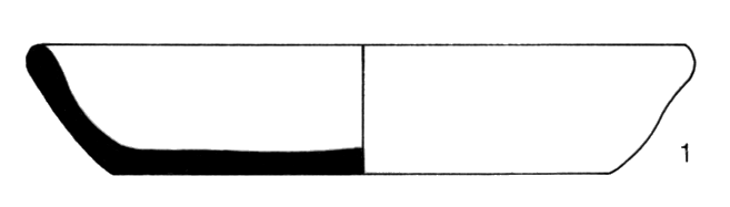 Assiette aux parois divergentes rectilignes ; lèvre ronde ; base portante, assise plane ; céramique tournée, pâte de couleur noire, orangée en surface ; inclusions moyennes : quartz irrégulier en proportion moyenne ; surface brute.